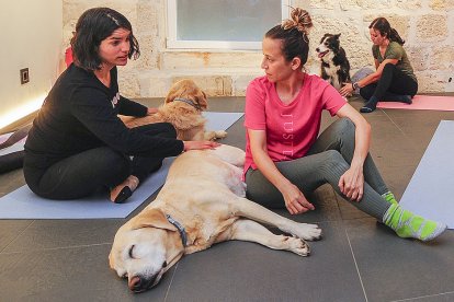 Ayer, una quincena de personas y sus ‘peludos’ pudieron disfrutar, por primera vez en la capital burgalesa, de esta actividad en Urban Yoga Estudio, espacio fundado por Estela Gutiérrez. El objetivo es «conectar con nuestro perro y relajarnos con él. Pasar tiempo de calidad mediante las caricias, fortaleciendo su musculatura, eliminando el estrés y comunicándonos con él desde la tranquilidad y la calma», explica la adiestradora, quien hace unos años registró esta nueva modalidad y es la encargada de formar a la quincena de profesionales que imparten esta disciplina a nivel nacional.