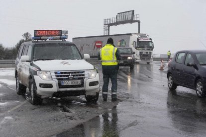 Tráfico saca de las autovías a los camiones y los embolsa en Lerma, Miranda y Rubena L Las nevadas arreciaron por la tarde en la mitad sur y el extremo norte de Burgos