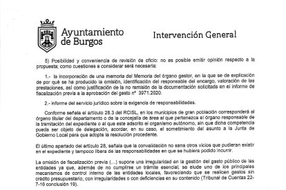 En este último concluye que no se han subsanado los errores de los que alertó en diciembre y advierte que la consecuencia de omitir la función interventora es la paralización del expediente. «La convalidación no sana otros vicios que pudieran existir en el expediente y tampoco libera de las responsabilidades en que se hubiera podido incurrir», señala en el documento.