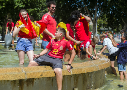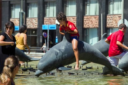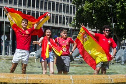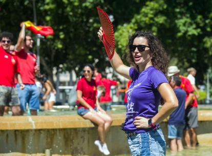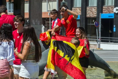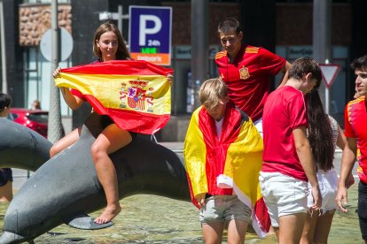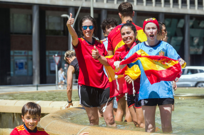 La fuente de los delfines en la plaza de España de la capital burgalesa volvió a ser el lugar de celebración de una gesta deportiva. En este caso el campeonato del mundo logrado por la selección española femenina de fútbol. Muchos acudieron a la celebración de la fuente directos desde el monasterio de San Juan, donde se vivió la emoción de la final en la pantalla gigante.