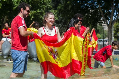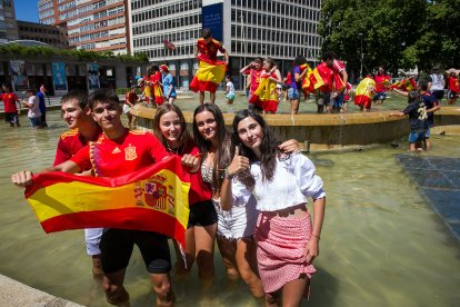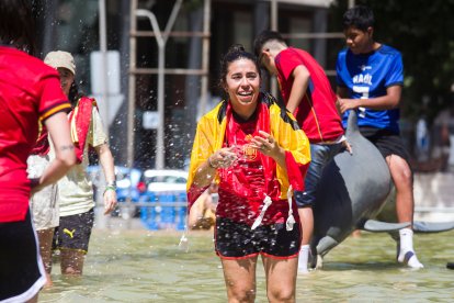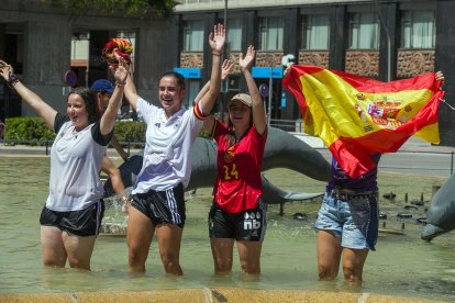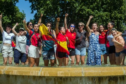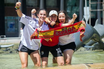 No se lo pensaron dos veces a la hora de meterse en la fuente. Ellas, como jugadoras de fútbol y competidoras con los colores del Burgos CF, más que nadie saben del valor de la gesta de la selección española femenina. Quien sabe si en la próxima final de la selección pudiera participar alguna de ellas. Pasión por el fútbol no les falta.