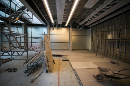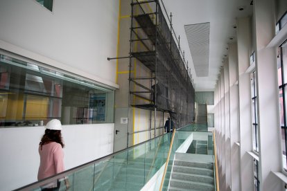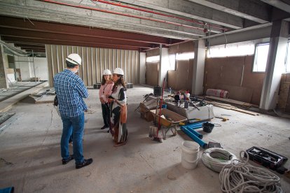 Las obras de desdoblamiento de las dos plantas superiores del Centro Nacional de Investigación sobre la Evolución Humana (Cenieh) avanzan a buen ritmo. El proyecto se divide en dos fases y la segunda está a punto de iniciarse. La primera parte, con una inversión cercana a los 800.000 euros, supone transformar una doble planta que iba a ser la biblioteca y zona de dirección del centro en dos plantas diferentes para laboratorios de nuevas líneas de investigación abierta y futuras necesidades.