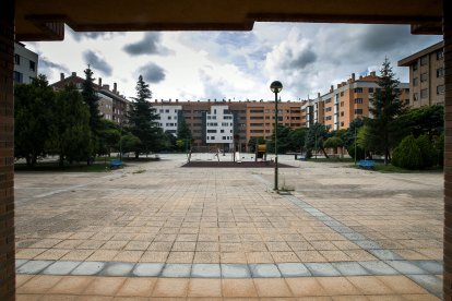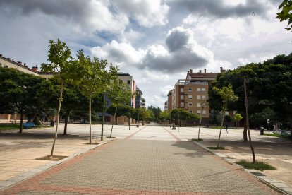 La plaza Rovira i Virgili, en el entorno de la Universidad de Burgos, se considera un «espacio peatonal amenazado» por el paso frecuente de vehículos, en su mayoría de reparto.