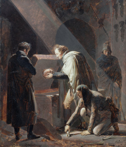 Cuadro de Alexandre Evariste Fragonard sobre Vivant Denon expoliando o reemplanzando los huesos del Cid.