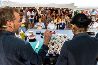 La programación del domingo puso el broche de oro al ciclo “Días de Cerezas”, que durante todo el fin de semana ha tenido como protagonista a este fruto tan ligado al verano burgalés. La jornada comenzó con las primeras elaboraciones en directo, a cargo de los cocineros Raúl Sedano (El Huerto de Roque), Rodrigo Corrales (La Doña Clarita) e Iliana da Rosa (Boccaccio 70), quienes mostraron distintas formas de integrar la cereza de Las Caderechas en recetas creativas y accesibles para el gran público.