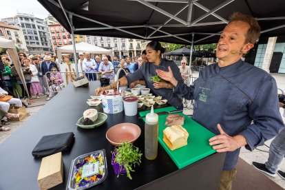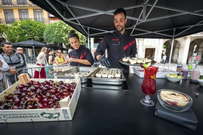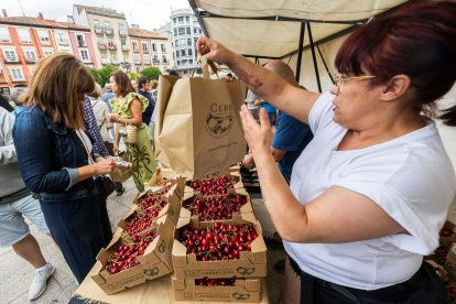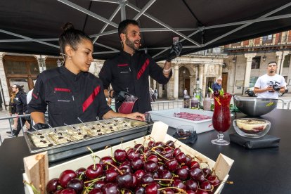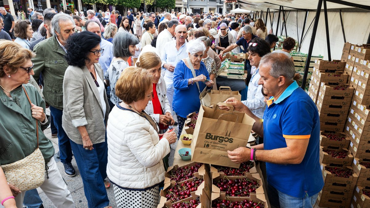 La Plaza Mayor de Burgos acogió este domingo la décima edición de la Fiesta Gastronómica de la Cereza de Las Caderechas con cocina en directo, música en vivo y la venta del producto estrella