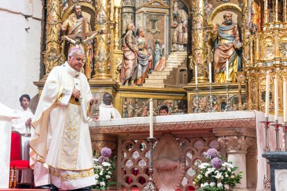 La misa estuvo presidida por el arzobispo de Burgos, Mario Iceta Gavicagogeascoa, quien recordó durante la homilía que «nuestra Madre está en el cielo» y llamó a los fieles a compartir su destino glorioso. Iceta repasó el significado del dogma de la Asunción, proclamado en 1950 por el papa Pío XII, y destacó su arraigo en la tradición española, al señalar que 33 de las 69 catedrales del país están dedicadas a esta advocación, incluida la de Burgos, encomendada a Santa María la Mayor por el rey san Fernando.