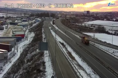 Muchos camiones con destino al centro de la península y otras zonas en las que la situación del tráfico no está normalizada y aún no es posible circular por la nieve acumulada, permanecen ambolsados tanto en Rubena como en Aranda en la A-1