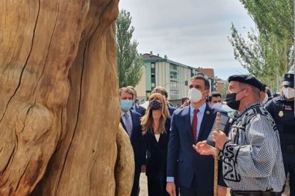 El presidente del Gobierno, Pedro Sánchez, ha recibido a la Junta Directiva de la Cabaña Real de Carreteros, propietaria de la talla, y su creador, el escultor Humberto Abad