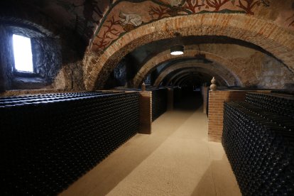 Interior de la bodega románica, la más antigua que se conserva, del Monasterio de San Pedro de Cardeña. ISRAEL L. MURILLO