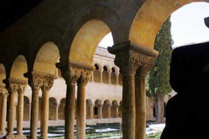El claustro románico de la abadía, con su enhiesto ciprés, es uno de los símbolos de Santo Domingo de Silos.
