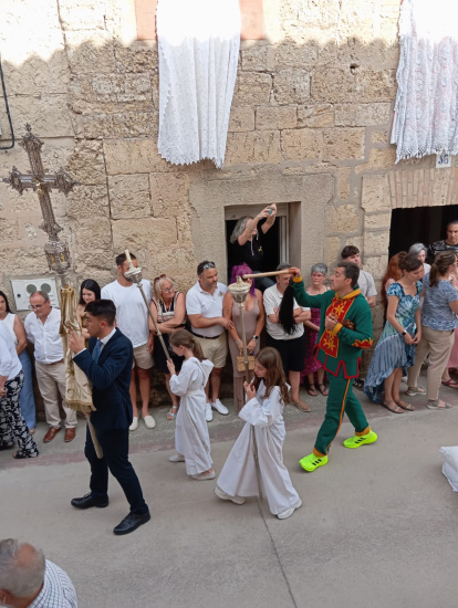El espacio escénico de esta representación no es un teatro al uso: son las propias calles, tortuosas y floridas, las que actúan como escenario. También el templo parroquial se convierte por momentos en foco central de los actos. La procesión, cuidadosamente ordenada, parte con la cruz parroquial y los estandartes de las cofradías, seguida por los fieles con velas encendidas, los regidores y los niños bendecidos, que serán acompañados por el Santísimo bajo palio. Detrás, siempre agazapado, el Colacho espera su momento para aparecer y saltar, cumpliendo con un rito tan esperado como simbólico.