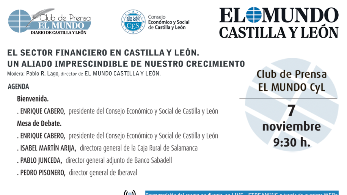 EL MUNDO Diario de Castilla y León celebra hoy un nuevo Club de Prensa dedicado en esta ocasión al sector financiero.