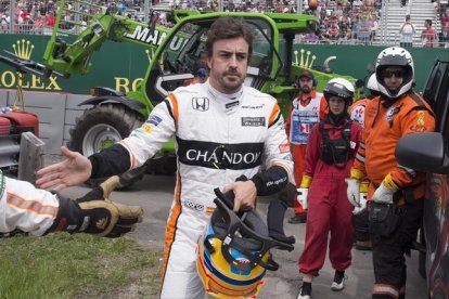 Los datos ofrecidos por Kantar Media, la empresa que mide las audiencias en España, no ofrecen dudas: el asturiano es quien ejerce el tirón y los espectadores le siguen allá donde compita, independientemente de cuál sea el certamen. La decisión que el asturiano tome sobre su futuro («lo haré después del verano, sobre el mes de septiembre», dijo este viernes en el paddock de Montreal, donde este fin de semana se disputa en el GP de Canadá con otra lucha cerrada en Mercedes y Ferrari), condicionará y mucho el interés -y el precio, claro- de los derechos audiovisuales de la F-1 en España. El contrato de Movistar (65 millones por temporada) expira a finales de este año, y la plataforma tendrá que competir contra Mediapro y, quizá, Mediaset, por su renovación en torno a un precio que dependerá de si Alonso sigue en F-1, y si puede o no ganar, claro. Este viernes, durante los primeros ensayos libres, estaba marcando el 13º mejor tiempo cuando desde su box le dijeron que detuviese el coche por un problema en la dirección.