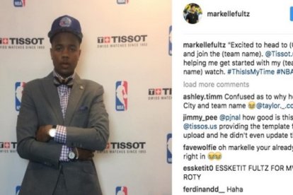El jugador escribió el clásico mensaje mostrando su felicidad por su llegada a un club y una ciudad determinados, pero se dejó los espacios para escribir lo que tocase y se olvidó rellanarlos. "Ilusionado con poner rumbo a (ciudad) y unirme a los (nombre del equipo). Tissot me está ayudando a empezar con mi reloj (nombre del equipo)", apareció escrito en su cuenta deInstagram junto a una foto en la que muestra dos relojes (al estilo de Javier Bardem en 'Huevos de oro'). Se supone que a estas alturas tanto el base como el 'community manager' que escribió el texto (el jugador se apresuró a decir que había tenido el móvil apagado todo el día) ya saben en qué franquicia ha recaído (de hecho, estaba bastante cantado que se iría a los Sixers como número 1).