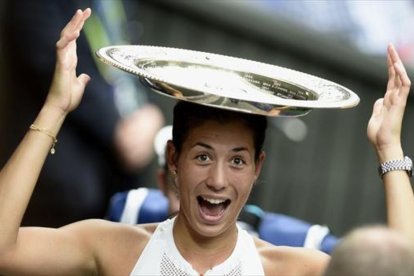 Esta vez no durmió con la copa en la mesita del hotel, como en Roland Garros. El trofeo se lo entregaron anoche en la gala tradicional de campeones en el edificio Guildhall, en la City de Londres. Pero como en París hace un año, Garbiñe Muguruza no pudo casi dormir de la emoción. "Me desperté muy pronto a las cuatro de la mañana pensando ¿Es verdad? ¿Tengo Wimbledon? y miraba el pin que me habían dado después de ganar. Y, sí, allí ponía que ya era miembro del club que es una de las cosas que dan a los campeones".