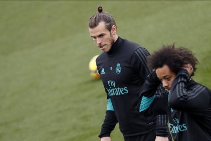 Bale y Marcelo, durante el entrenamiento de este viernes en Valdebebas / JAVIER LIZÓN (EFE)