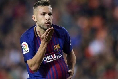 Jordi Alba marca el gol del empate al Valencia / MIGUEL LORENZO
