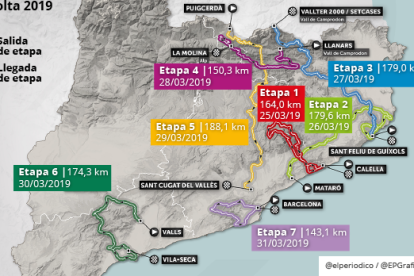 Tampoco se debería olvidar que la Volta es la tercera carrera por etapas más antigua del planeta. La ronda catalana nació en 1911, dos años más tarde que el Giro y siguiendo la idea del Tour que se creó en 1903. Por eso, cada temporada la prueba se sumerge en los libros de historia que ya incluyen estos últimos años los textos con los recuerdos de las subidas a las estaciones de esquí de Vallter 2.000 (el próximo miércoles) y La Molina (el jueves que viene) como tradicionales lugares de peregrinación de una carrera que también visitará los llanos de Calella, Sant Feliu de Guixols, Sant Cugat del Vallès y Vila-seca; sin olvidar el tradicional punto y final en la montaña de Montjuïc, por un circuito que ya se ha hecho habitual, donde se coronará al vencedor de la 99 edición de la Volta.
