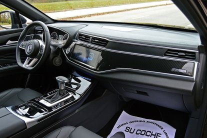 El salpicadero está compuesto por un material plástico con efecto fibra de carbono y en el centro de todo, la gran pantalla táctil de 10,25 pulgadas con una visibilidad muy correcta y un funcionamiento e intercambio de menús suficiente. Debajo también tiene otra especie de pantalla, correspondiente al equipo de climatización, mucho más espartana.