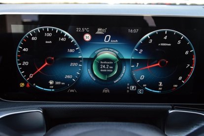 En la pantalla del equipo de infoocio tendremos disponible cierta información del sistema operativo, de los diferentes sistemas de confort y seguridad del vehículo, el navegador o la imagen de las cámaras de ayuda al aparcamiento. Es táctil, con una excelente calidad de imagen y contiene MBUX.