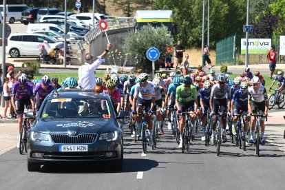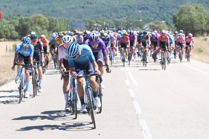 El líder de la prueba arropado por el pelotón durante un tramo del recorrido por la provincia de Soria.
