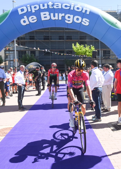 Alfombra morada, el color oficial de la provincia de Burgos, para Adam Yates en Golmayo.