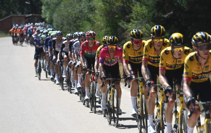 La labor del Jumbo-Visma para controlar la carretera fue suficiente para que Roglic llegase a Quintanar sin sobresaltos.