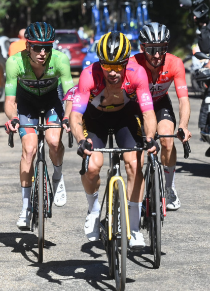 Yates quiso la victoria y saltó al esprint a falta de 100 metros para la meta. Vlasov se quedó y Roglic respondió sentado en la bicicleta, como dando a entender que no era el momento y que tendría margen. A falta de 50 metros y en la última curva, el esloveno metió la directa y sobrepasó con claridad al británico.