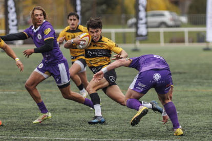 Y en la acción desde la banda, un placaje bajo de Santi Ortega acababa en un golpe terrible del argentino de los pucelanos, que sufrió una conmoción. Corría el minuto trece y el encuentro estuvo parado un cuarto de hora hasta evacuar en camilla al jugador visitante, por fortuna sin tensiones en cuanto a su estado de salud. Collarín, pulgar arriba y ovación cerrada de todo San Amaro al salir del campo.