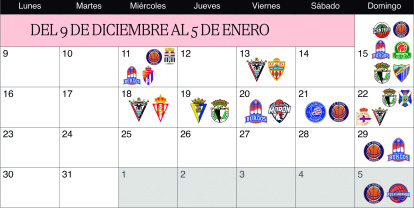 La jornada 20 la disputará el Mirandés el miércoles 18 en Anduva ante un Sporting de Gijón que hoy ocupa el cuarto lugar de la tabla. Otro rival complicado para los rojillos que tendrán que doblegar y esperar a que falle el Racing si quieren irse de vacaciones con el liderato. En la jornada 21, la última antes de Navidad, se medirán en Riazor al Depor el día 22.