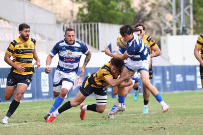 Sin embargo, La Vila siguió apretando en ataque y no tardó en devolverle la moneda con un segundo ensayo logrado esta vez por Quiroga y con la transformación de Güemes, colocando el marcador en 15-7. Los gualdinegros sufrieron mucho en defensa, aunque sacaron arrestos para ganar metros en ataque y jugar más en campo contrario. Su dominio en el tramo final de la primera parte se tradujo en un puntapié de castigo convertido por el 'Bichito' Mansilla en el minuto 27 y otro golpe de castigo anotado en el 35 por el propio Mansilla, que dejó al descanso un apretado 15-13.