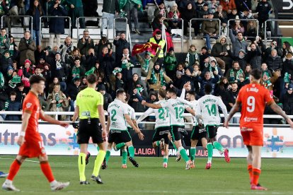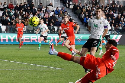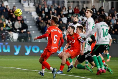La respuesta burgalesa llegaba en botas de David González, que se giraba y habilitaba a Fer Niño, pero caía este en la disputa del balón. La falta a punto estuvo de convertirla en gol Curro Sánchez, pero el balón se estrelló en el palo.