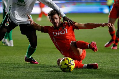 Había bajado la intensidad después de los primeros cinco minutos, y aunque los visitantes tenían el balón, el encuentro transcurría en gran parte en el centro del campo y la defensa burgalesa apenas sufría, aguantando bien las embestidas locales. Lo intentaban con todo los cántabros, sobre todo tratando de sacar partido de la velocidad de Andrés Martín, que se escapaba en el 24en busca de la portería burgalesa, pero replegó bien el equipo local y Cantero abortaba la jugada.