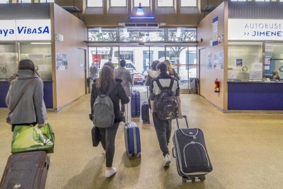 Un autobús de la línea a Madrid con el aforo reducido. / L. V.