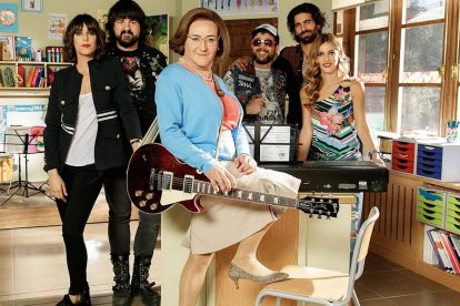 Así es como Santos se transforma en Avelina, una entrañable señora que irrumpe en el centro escolar para estar más tiempo con sus hijos. Lo peor es que tendrá que improvisar para ganarse la confianza de los alumnos, nada parecidos al público entregado que le jaleaba en los conciertos. Pero, como rockero irredento que es, Sergio se verá incapaz de cambiar de la noche a la mañana y convertirá a Avelina en una especie de huracán que transformará la vida en el colegio. En su nuevo rol, descubrirá también un mundo femenino que le llevará a entender mucho mejor a su exmujer, a la que intentará recuperar. Para ello, se integrará en el grupo de amigas compuesto por su exmujer (Lorena López), la directora del colegio (María Castro) y Natalia (Belén Cuesta), la antigua manager de la banda.