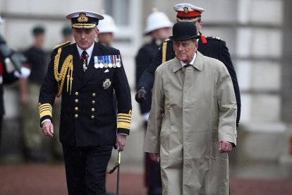El Duque de Edimburgo, acompañado por varios oficiales. / HANNAH MCKAY(REUTERS)
