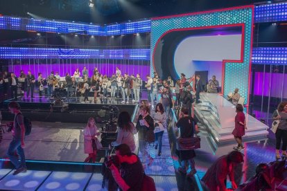 Imagen del plató de 'OT' con la prensa. / FERRAN SENDRA
