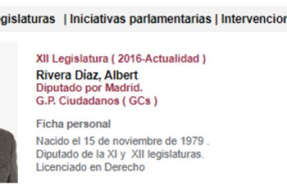 Pantallazo de la página web del Congreso con el currículum de Albert Rivera.